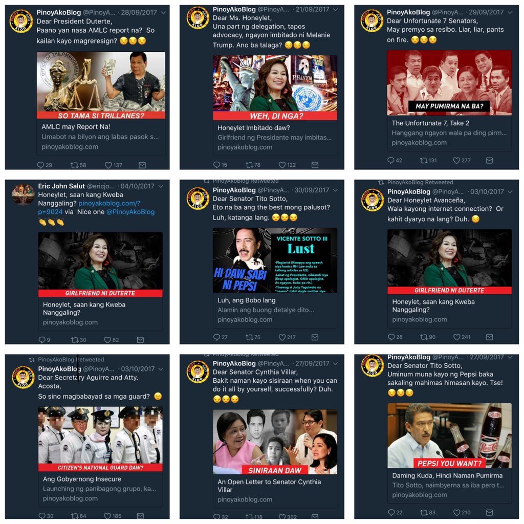 Before being outed as the blogger of Pinoy Ako Blog, Laurio did not have the courage to put her name on the articles she published. Before Netizens found out who the person behind the blogposts was, she was publishing articles that were malicious personal attacks against other people who held “contrarian” views. Laurio only adjusted her style and became more sober after she was outed.